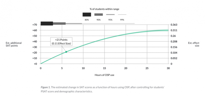 Outcome: Students who used Official SAT Practice for six or more hours scored 39 points more than students who did not use Official SAT Practice (a .20 effect size).